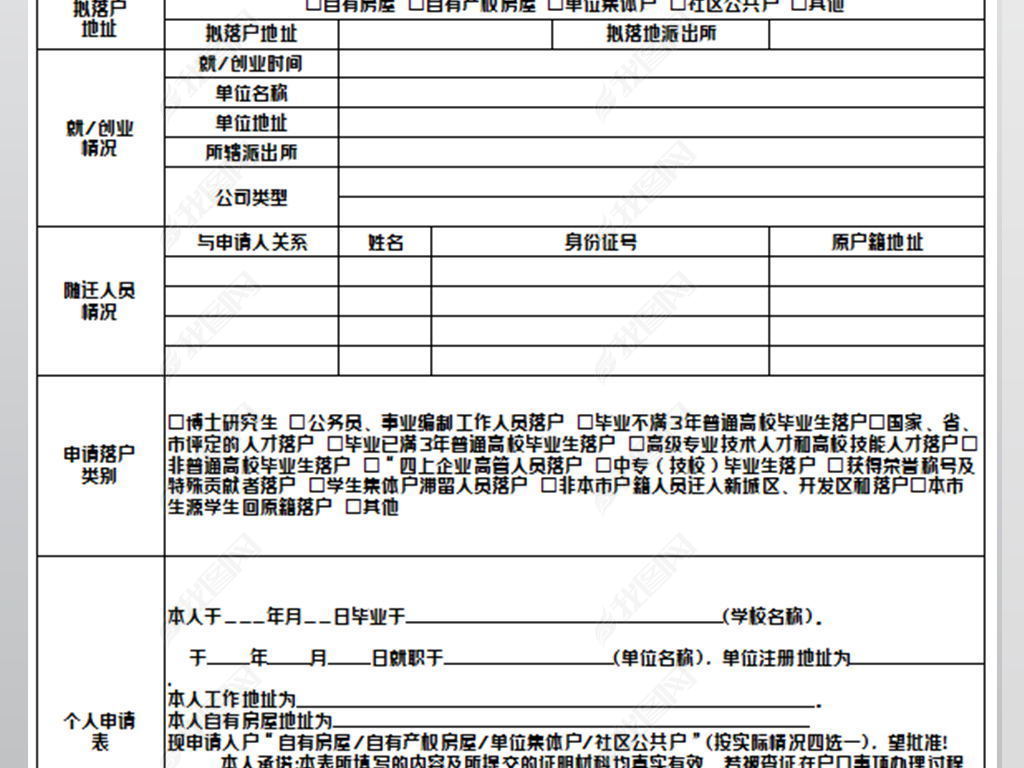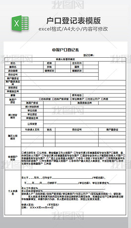 申报户口登记表模板