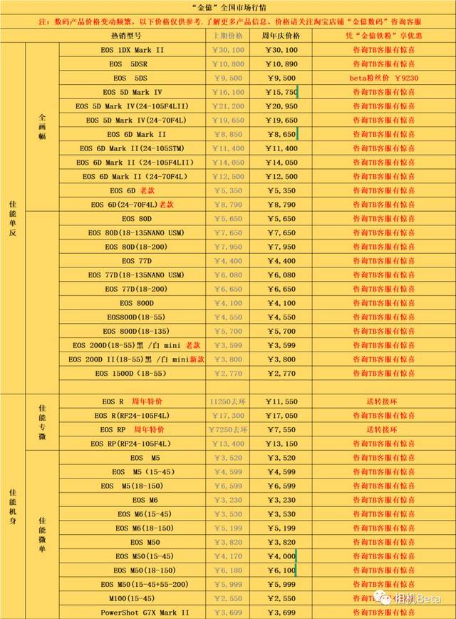 摄影器材价格周报,佳能5D4单反小降,索尼