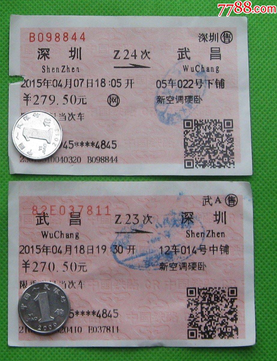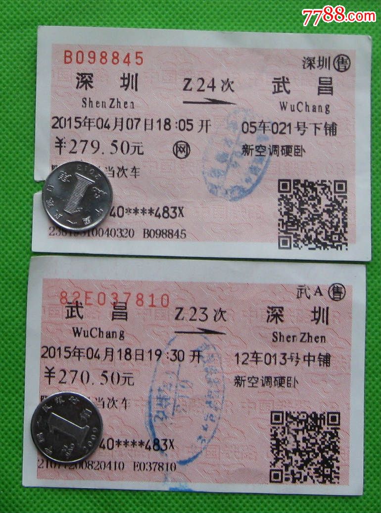 往返火车票【深圳-武昌z24,武昌-深圳z23】