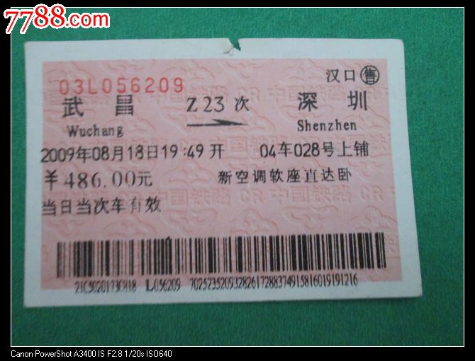 火车票【武昌-深圳z23】