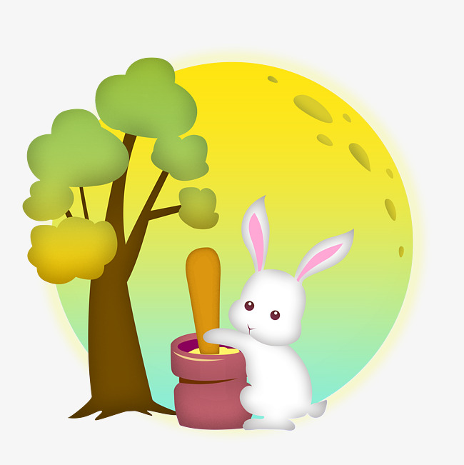 中秋节可爱卡通玉兔捣药素材图片免费下载_高清psd_千库网(图片编号11246962)