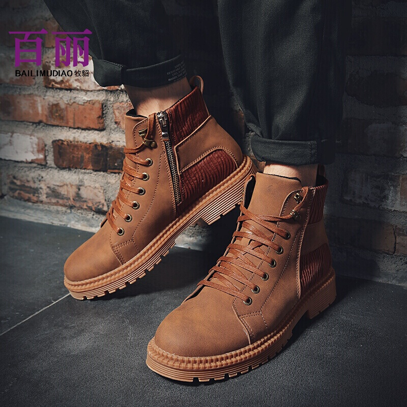 百丽牧貂男士高帮英伦休闲马丁靴2019
