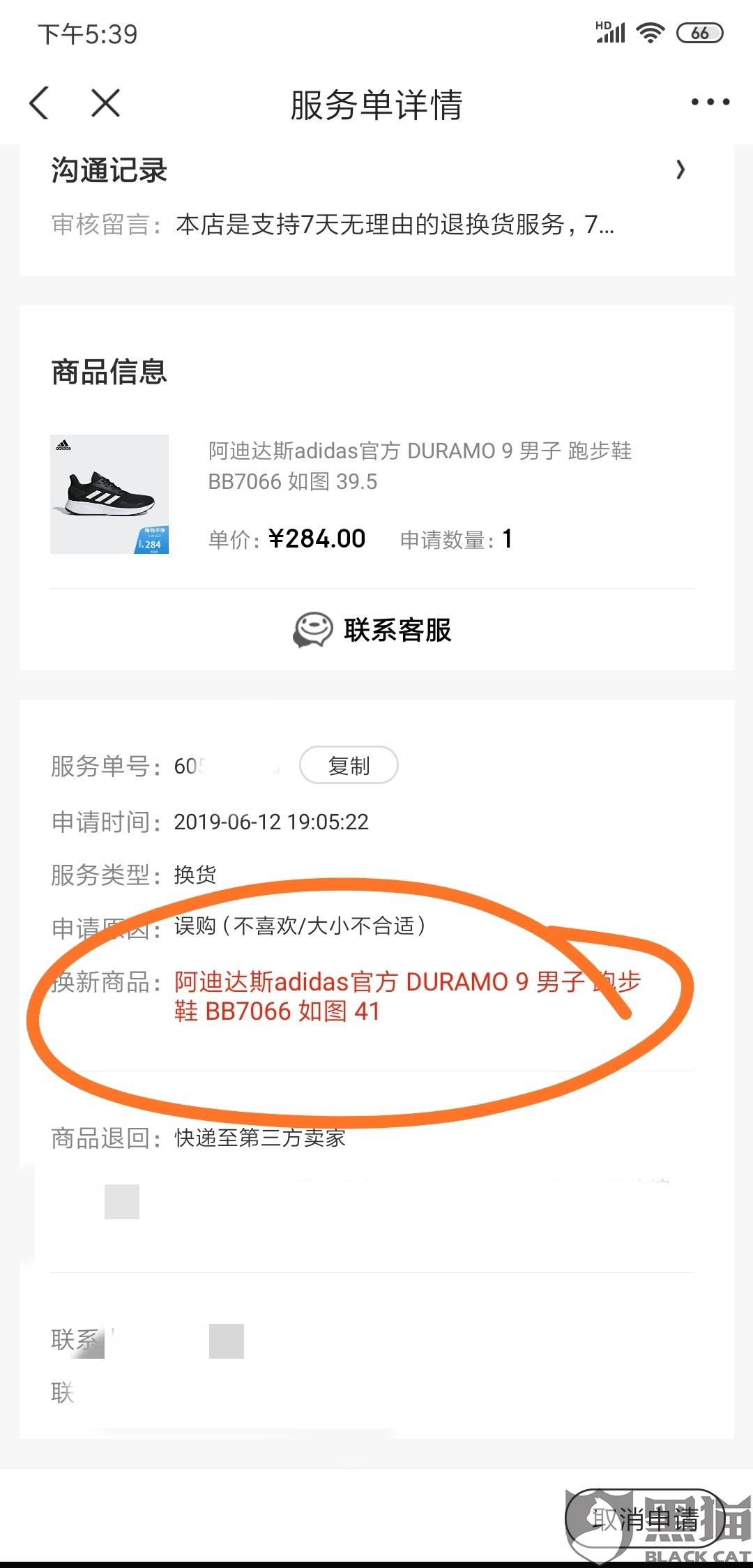 黑猫投诉:Adidas京东服务差 发货换货速度