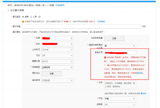 为什么淘宝发布提示批准文号有误?