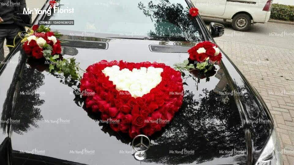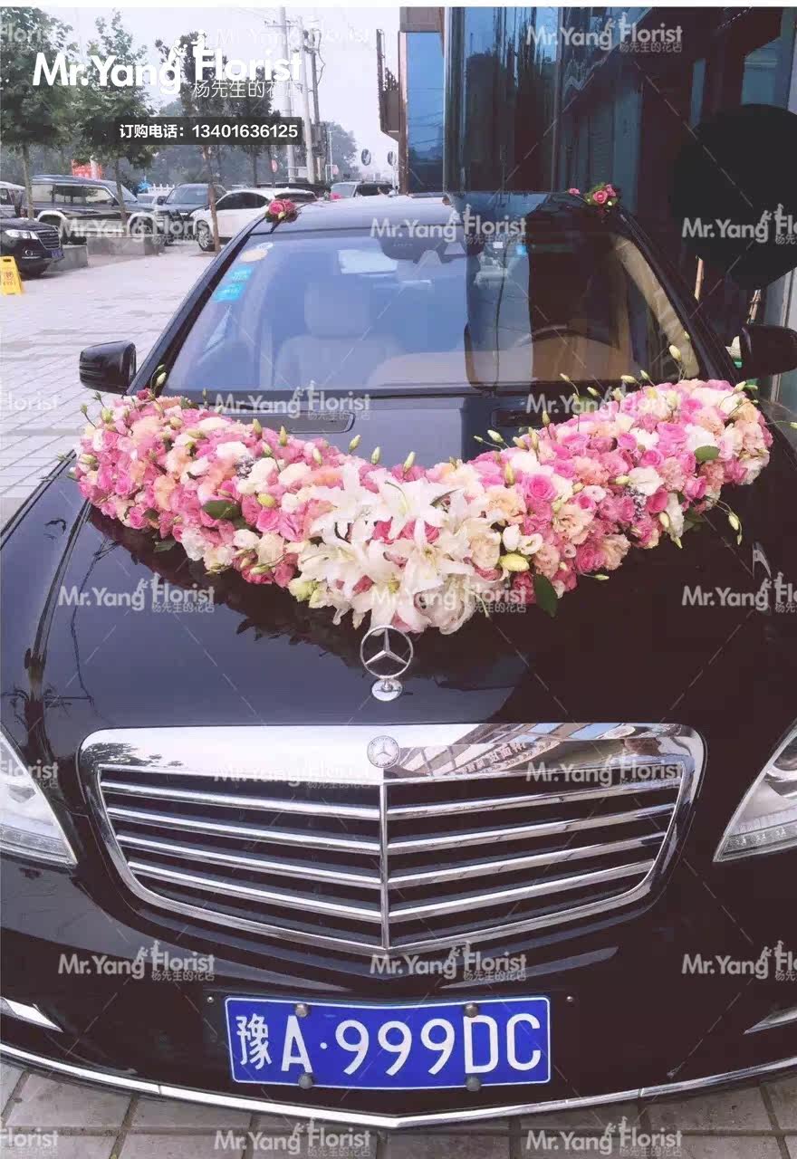 。网红婚车装饰 浪漫婚车装饰车头花 主婚车装饰套装 花车 真花创