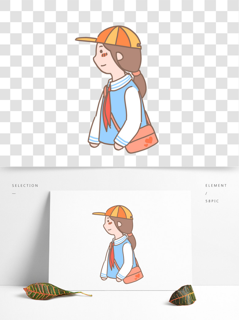 学生女孩子书包上学红领巾模板免费下载