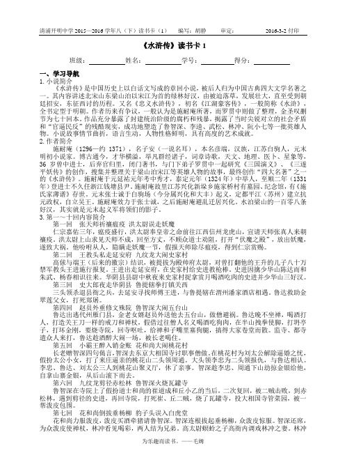 水浒传章回概括100回本-重点归纳资料