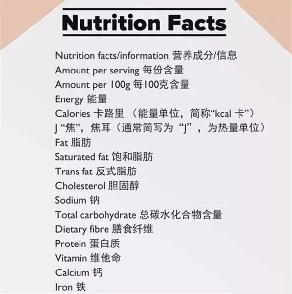 一篇文章教你读懂包装上的英语营养成分表