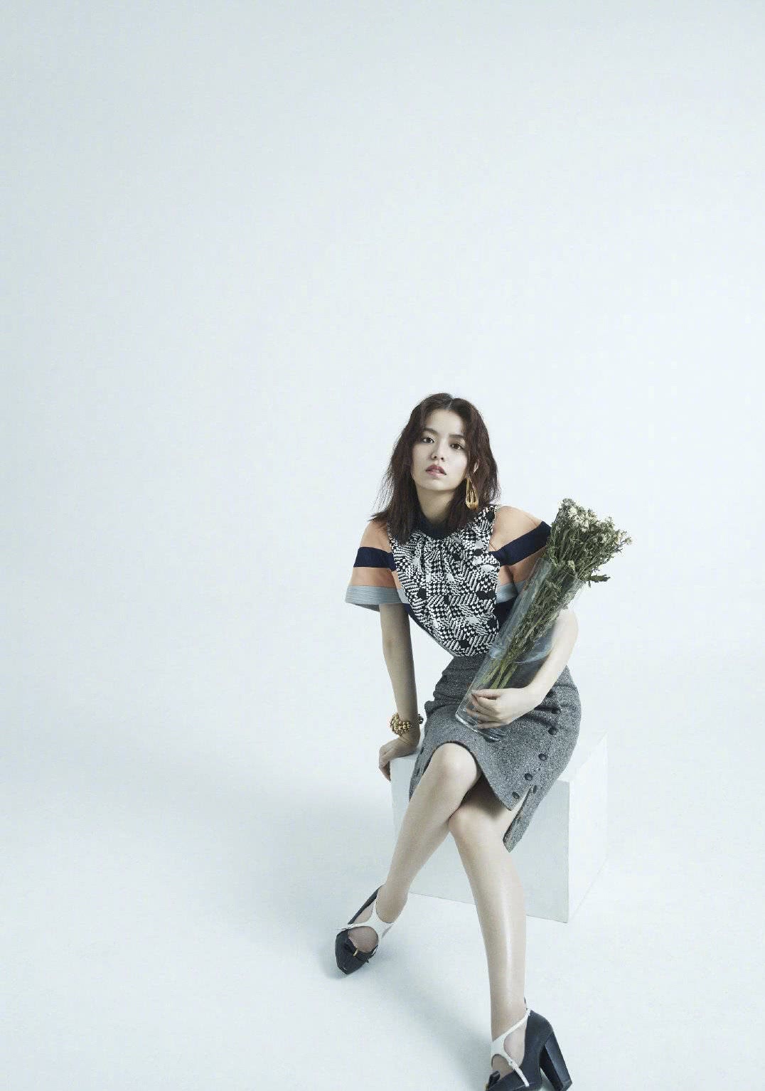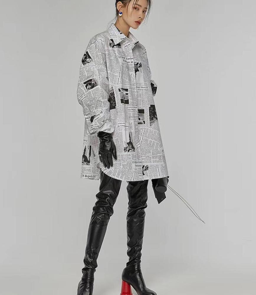 宋芸桦穿报纸裙踩银色高跟鞋,化身灰