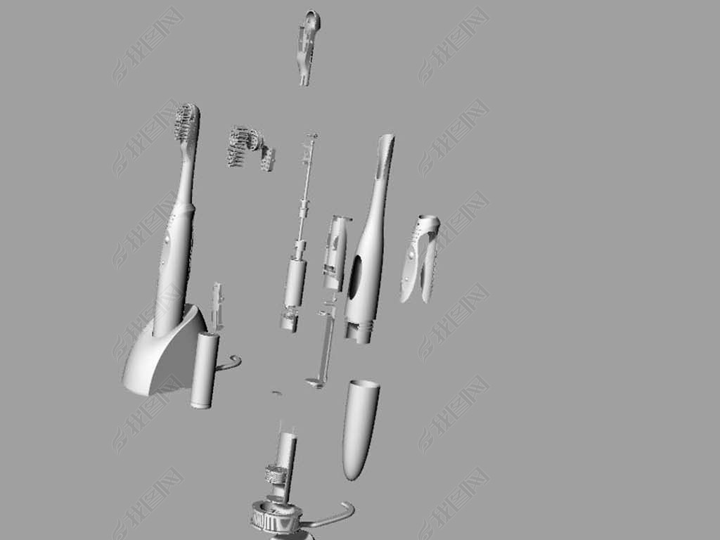 电动牙刷带内部结构爆炸图零件犀牛模型