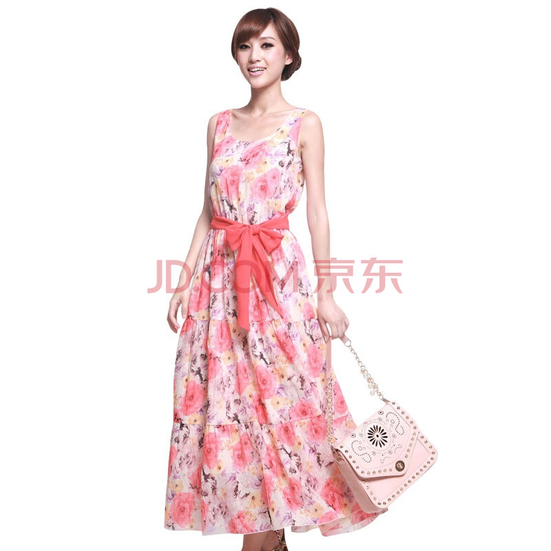 维克莱尔(vloyal)水墨色彩雪纺无袖连衣裙