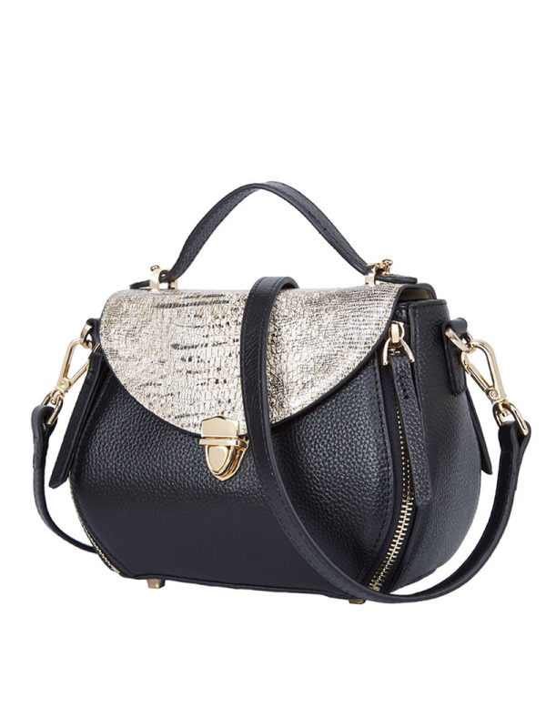 柏雅图时尚拼接斜挎包女头层牛皮锁扣单肩