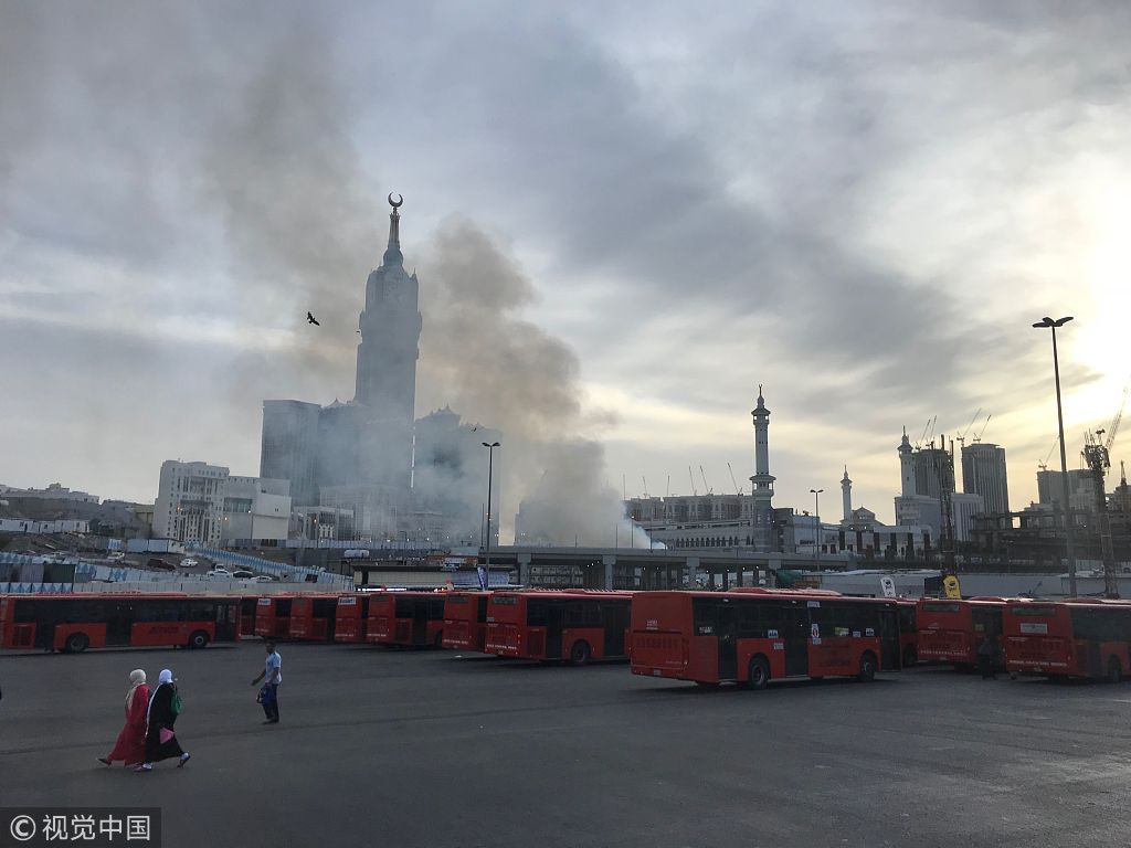 沙特麦加大清真寺旁一座4层建筑发生火灾
