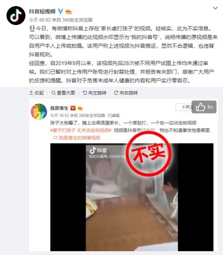 微博大V造谣抖音靠家庭暴力引流,遭辟谣