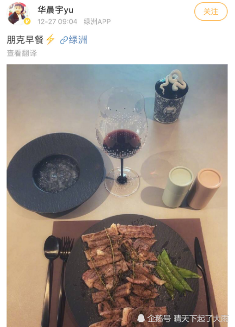 华晨宇晒豪华早餐,餐具价格上万,网友:难怪
