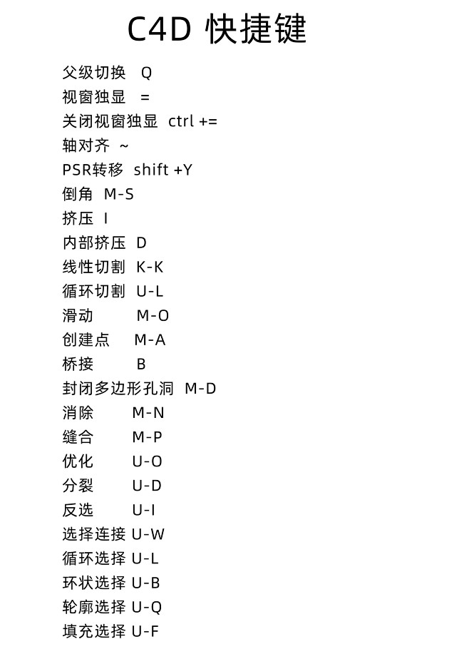 C4D快捷键大全