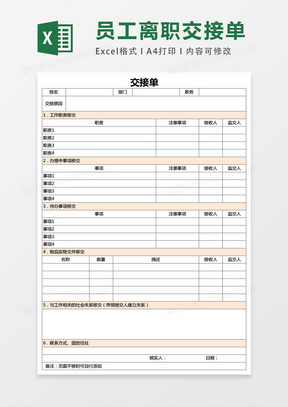 交接Excel表格模板下载_精品交接Excel表格大全_熊猫办公