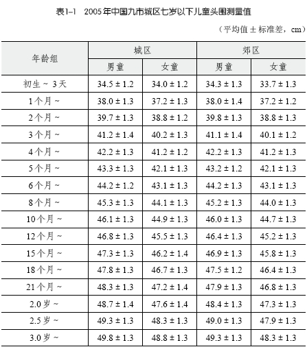 附表00017:男孩0-5岁头围标准表(WHO儿童
