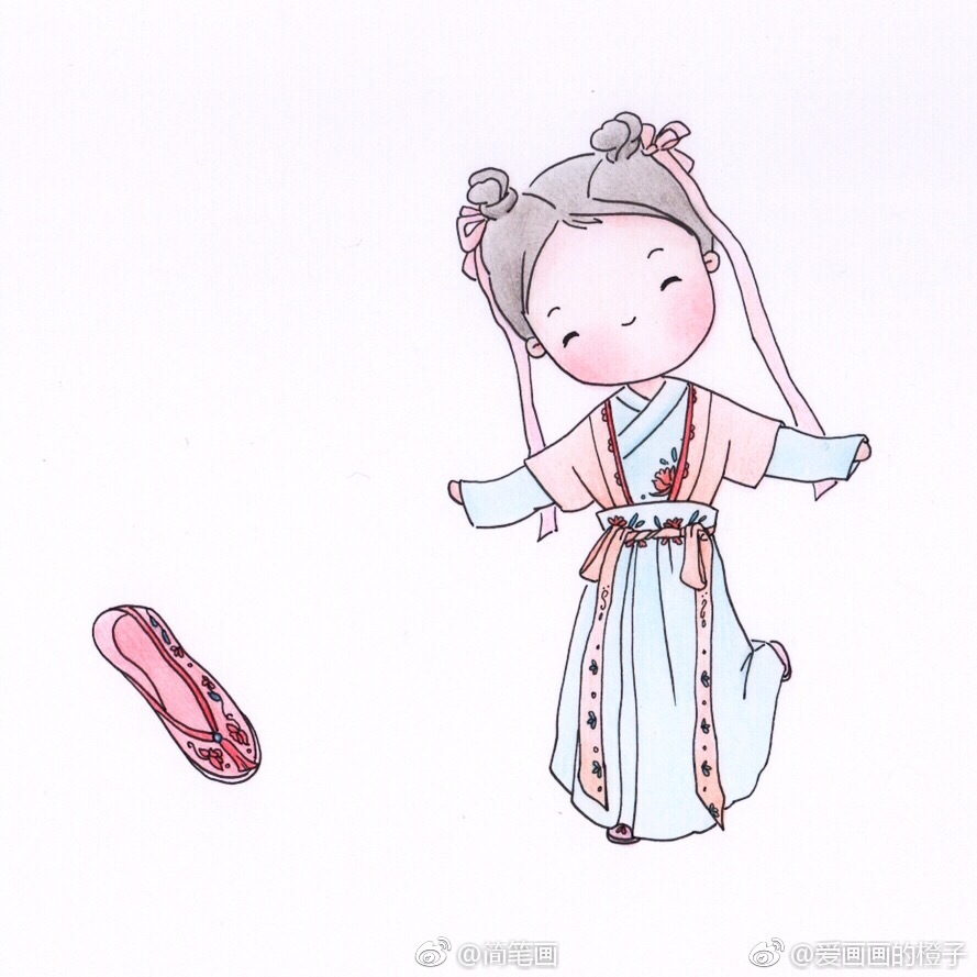 一组古风简笔画女孩(作者:爱画画的橙子 )