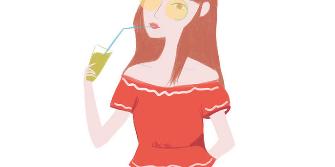 可爱卡通手绘夏天清爽女孩
