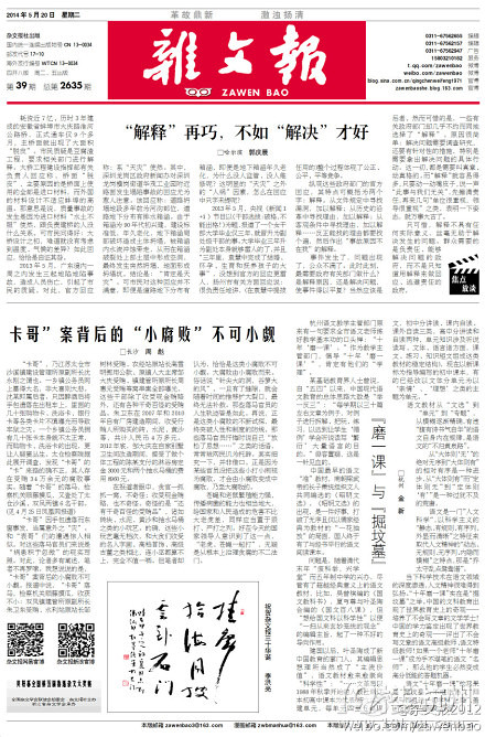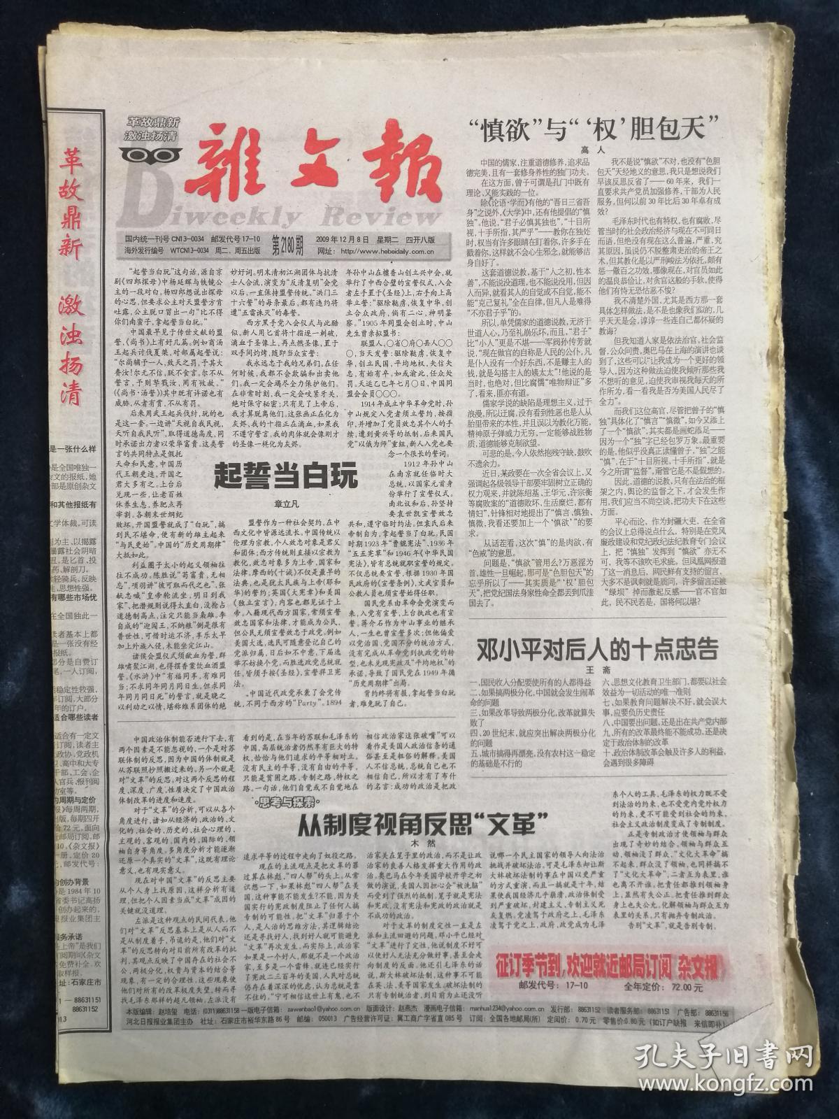 简介:杂文报是中国目前唯一的杂文专业报纸。1983年由时任河北省委书记的高扬同志主持创办。现为8版4开周2报。20