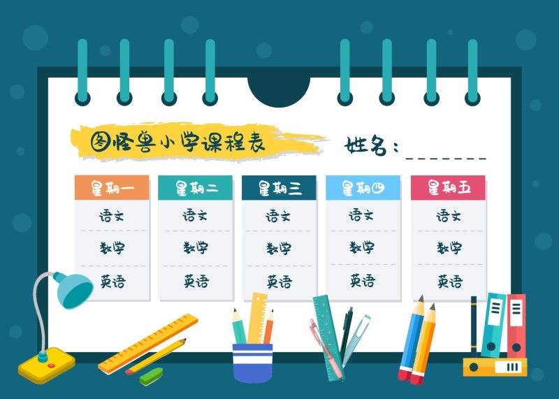 扁平卡通风学校课程表