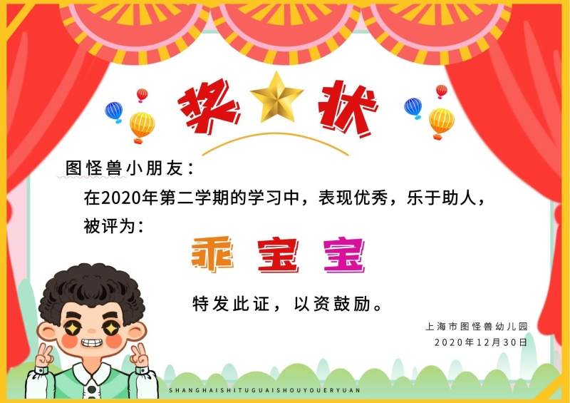 幼儿园乖宝宝荣誉奖状