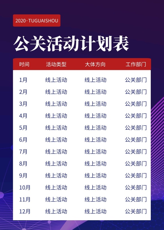 公关活动计划表简约商务蓝色