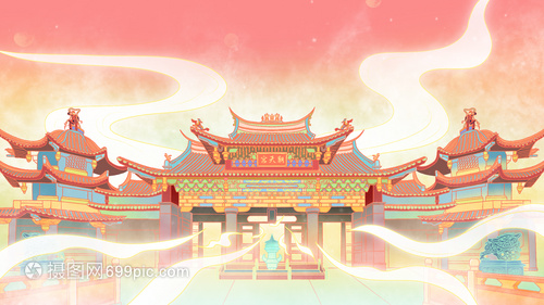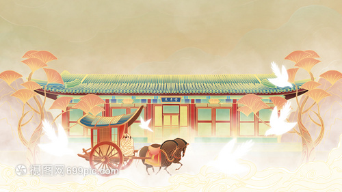 颐和园乐寿堂中国风建筑插画