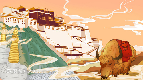 中国风布达拉宫建筑插画国潮风