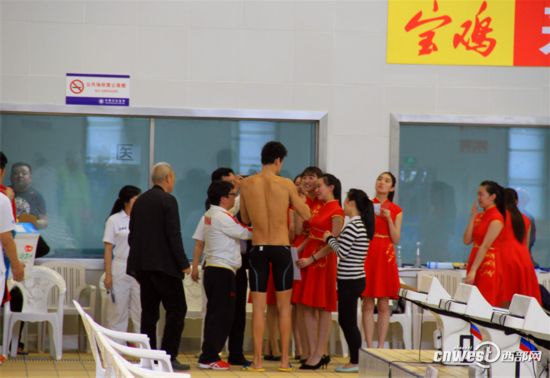 孙杨200米自由泳夺金 与宝鸡粉丝玩自拍庆祝