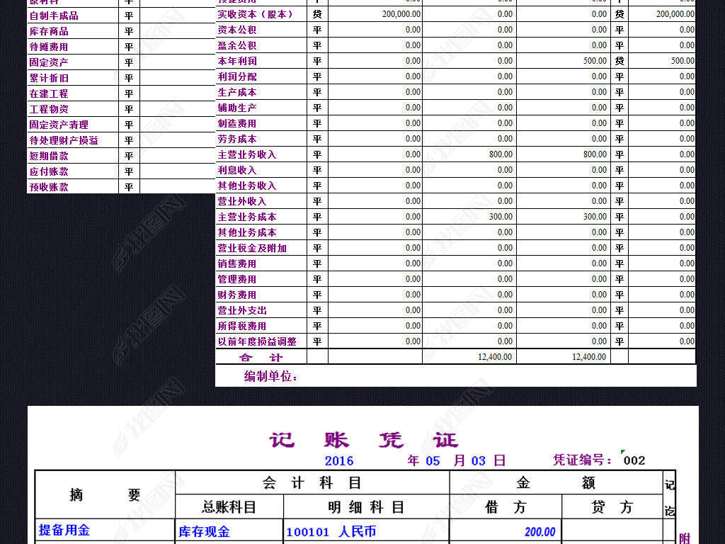 会计科目表记账凭证资产负债表损益表格模板