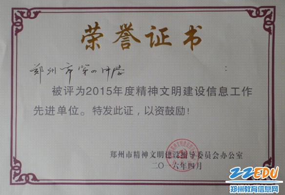 郑州四中荣获市精神文明建设信息工作先进