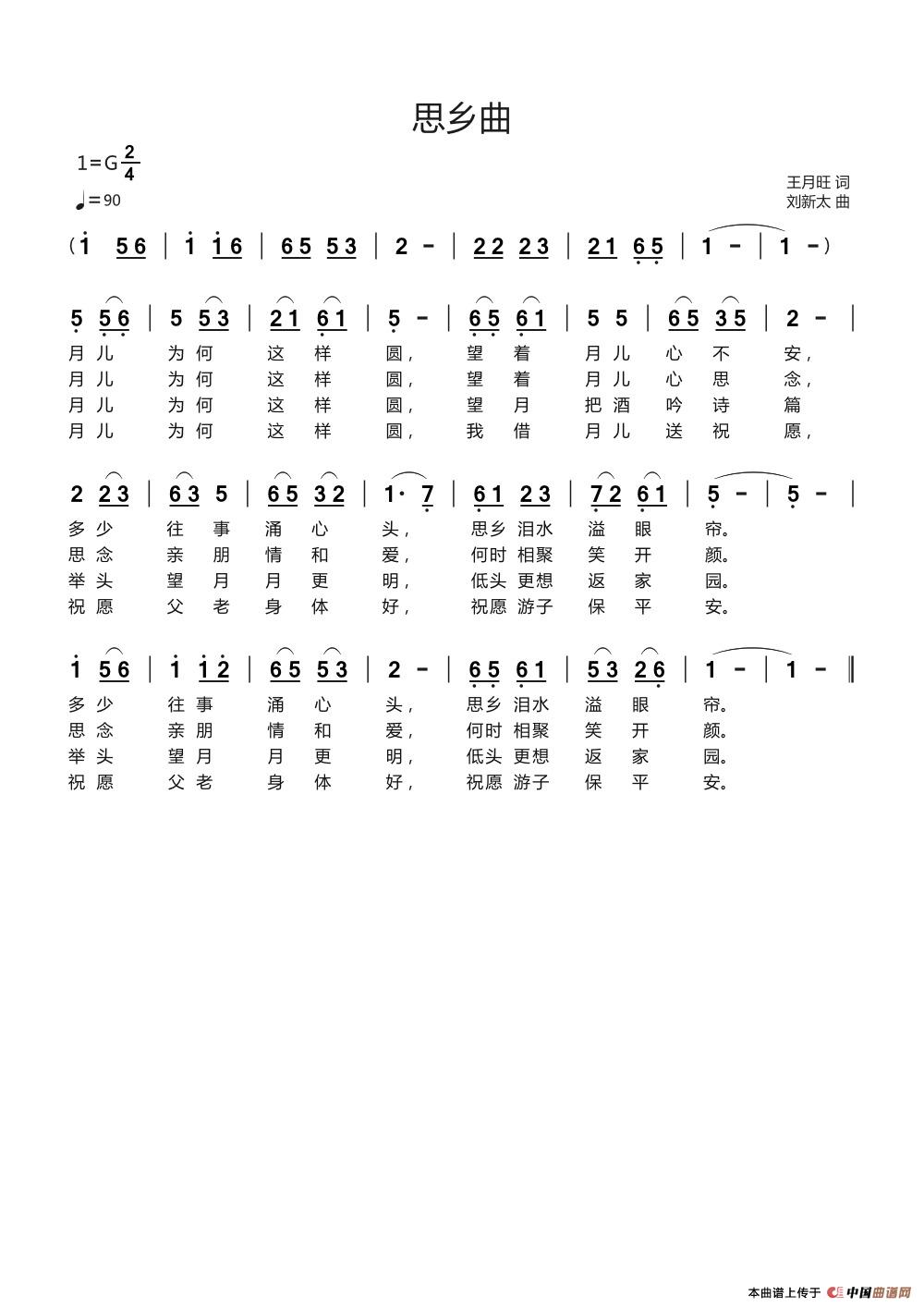 思乡曲影片海外赤子插曲罗天婵歌谱简谱