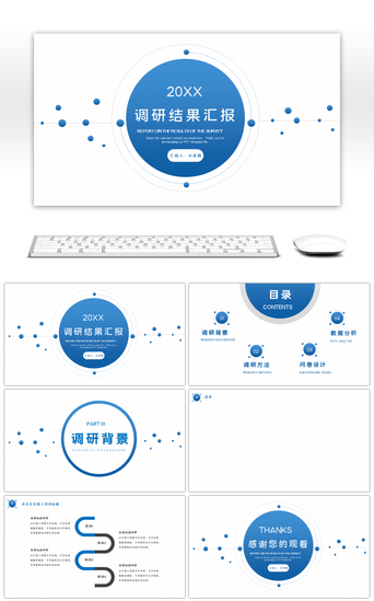 蓝色简约商务调研报告PPT背景ppt模板