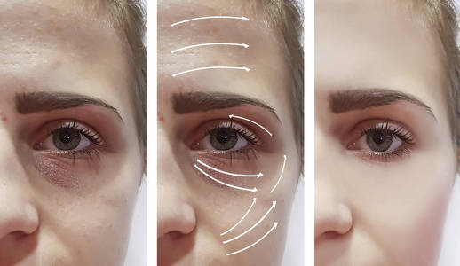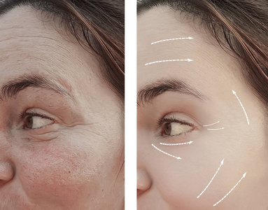 妇女脸皱纹矫正前后的程序, 箭头