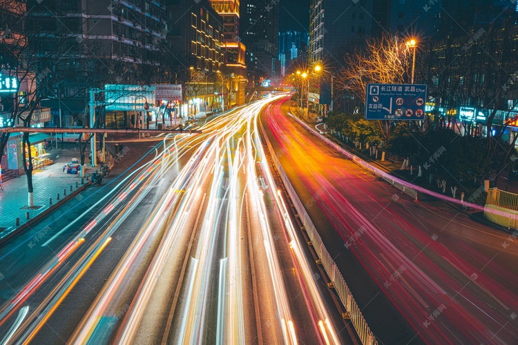 武汉城市街道大智路交通车流光绘图高清大图