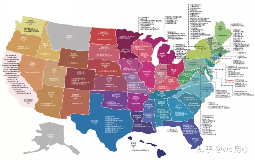2019年美国大学分布图高清中文版! 美国名校分布图中文版