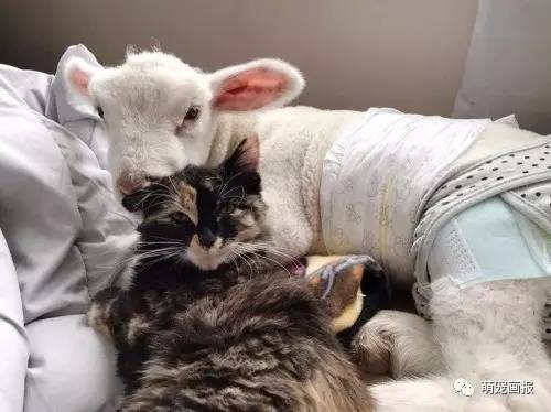 有爱心的猫咪姐姐照顾受伤的孤儿小羊-搜狐