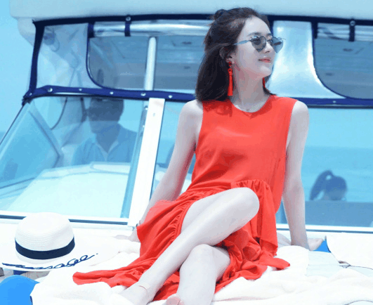 赵丽颖罕见晒性感照片, 红衣加身白到发光, 穿比基尼秀纤细腰身