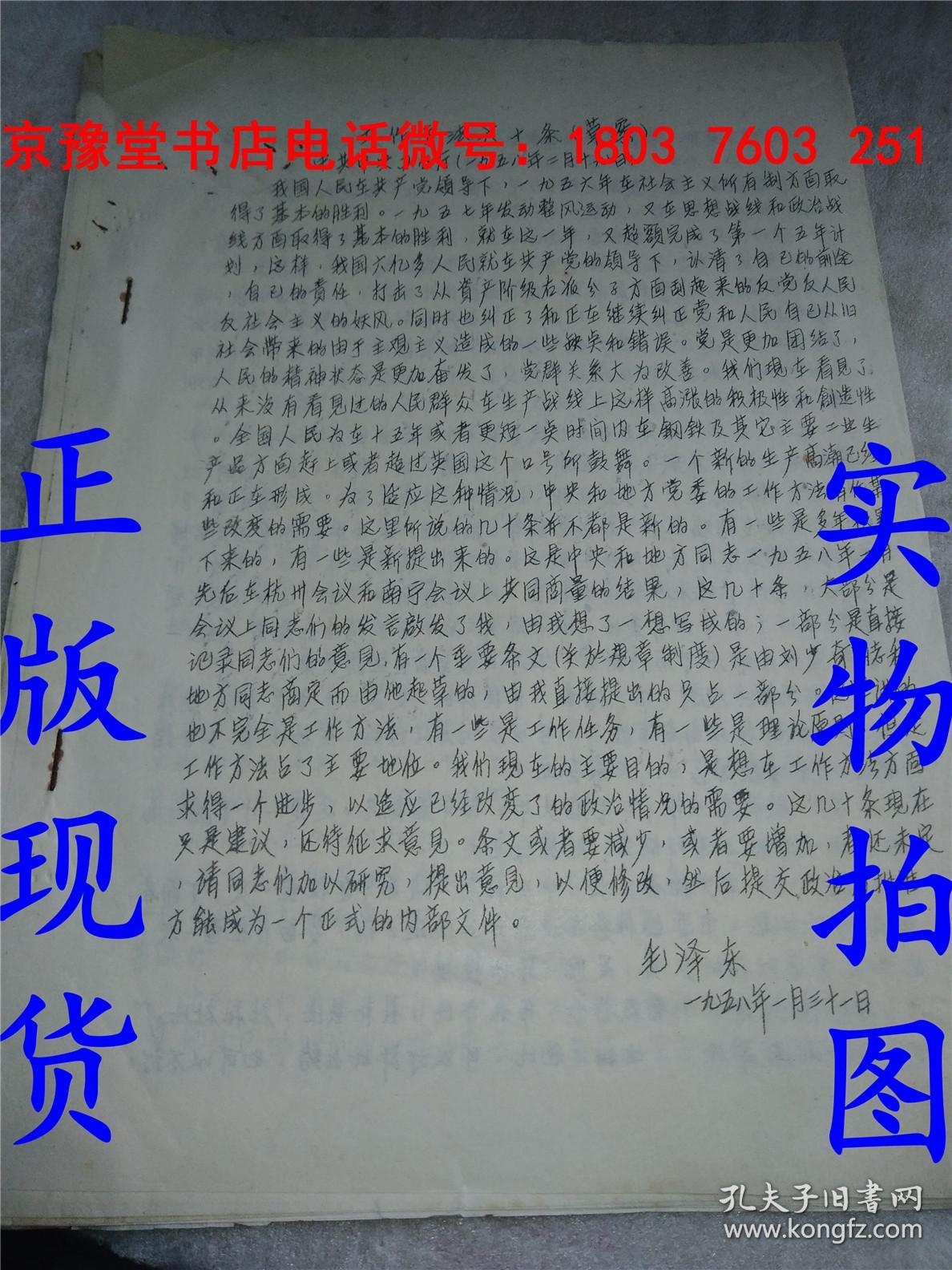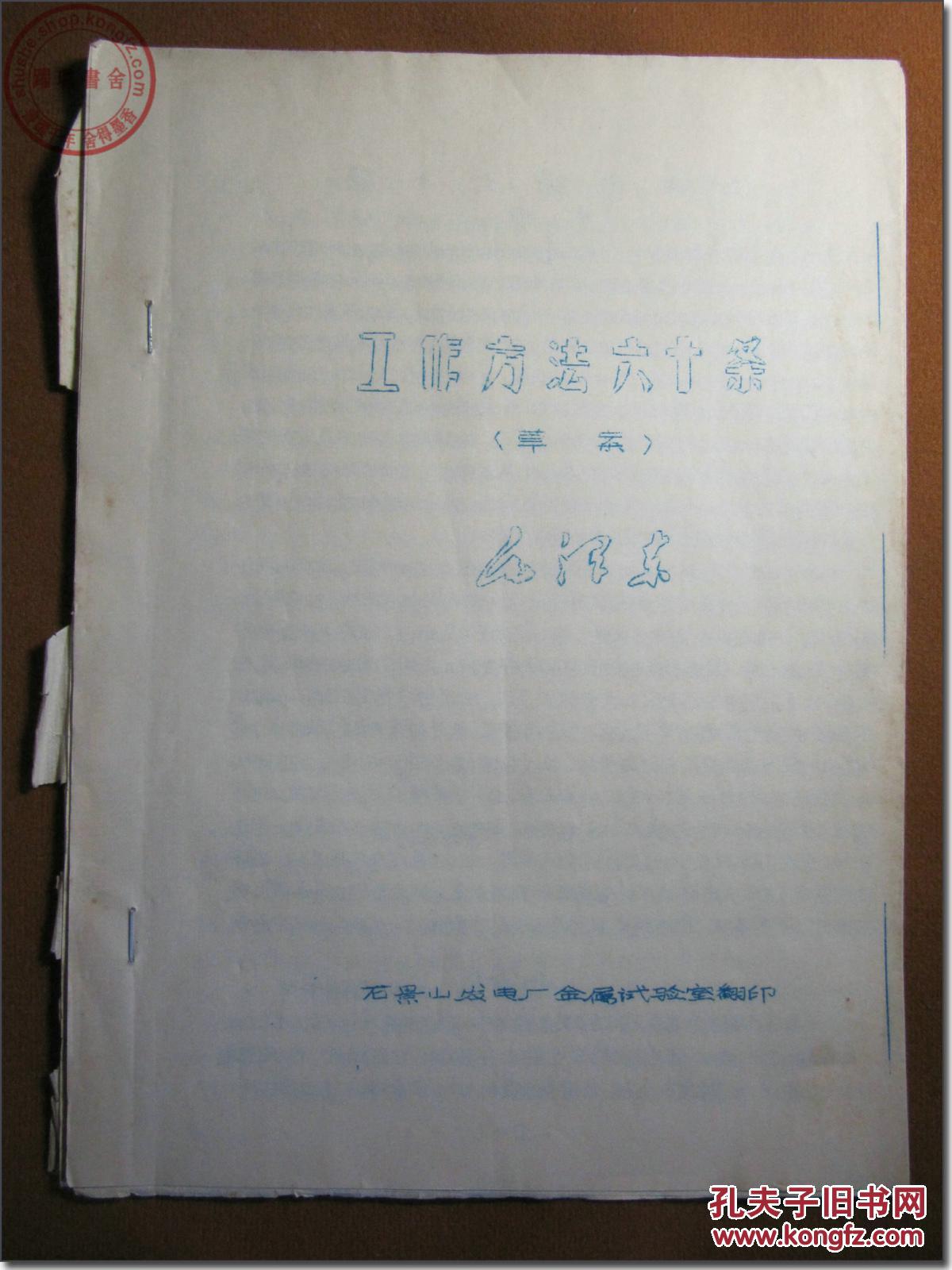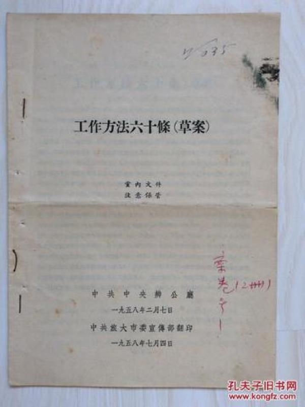 《工作方法六十条(草案)》,毛泽东主席著,