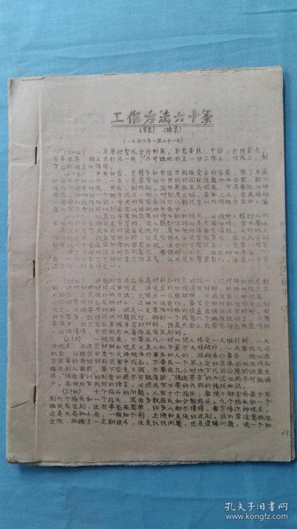 文革油印 工作方法六十条(草案)