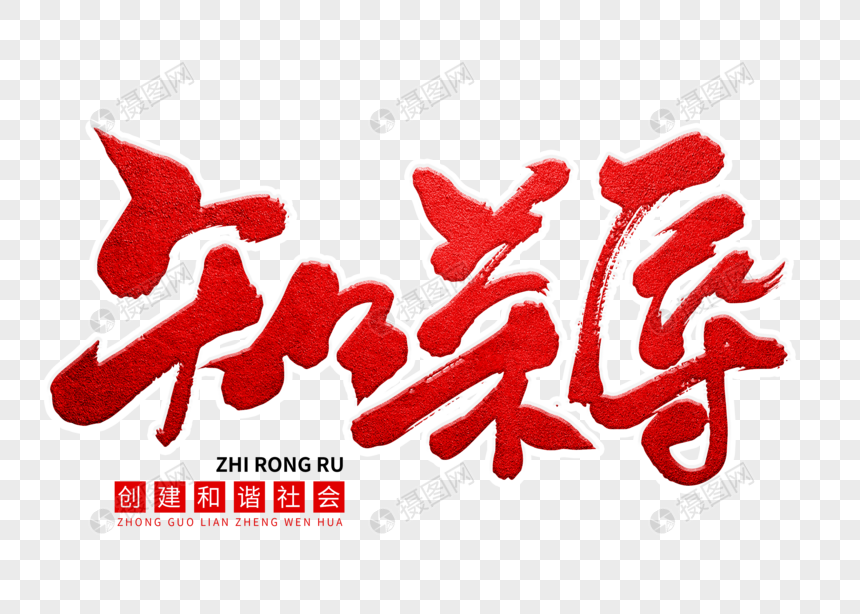 知荣辱手写毛笔字元素素材psd格式_设计素材免费下载_VRF高清图片