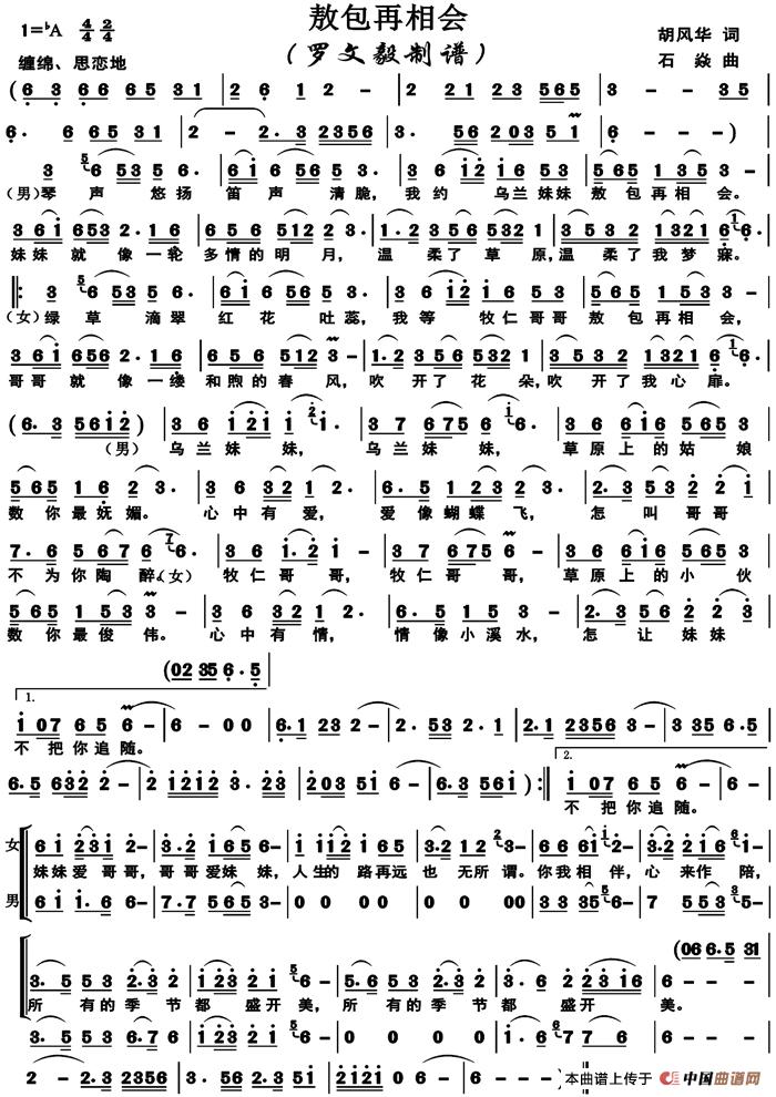 敖包相会再相会(二胡弓指谱)简谱_敖包相会