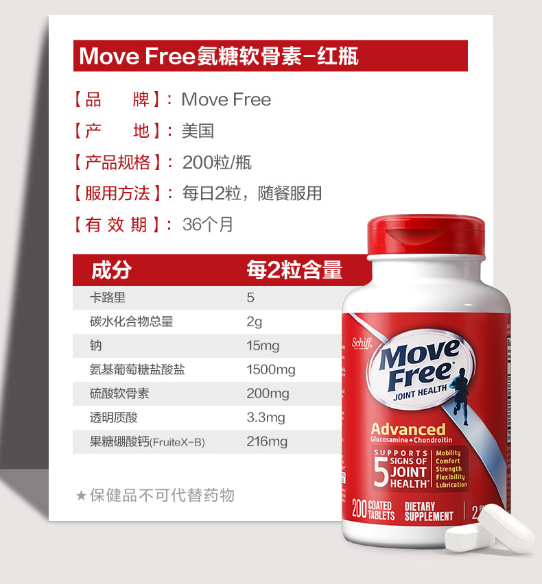 美国产 维骨力MoveFree 红盒软骨素 200粒