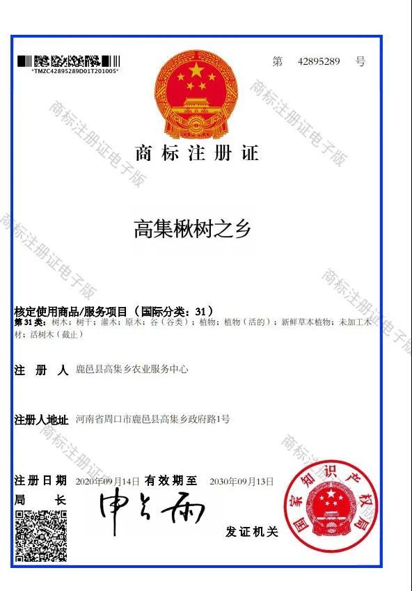 高集楸树之乡喜获国家注册商标