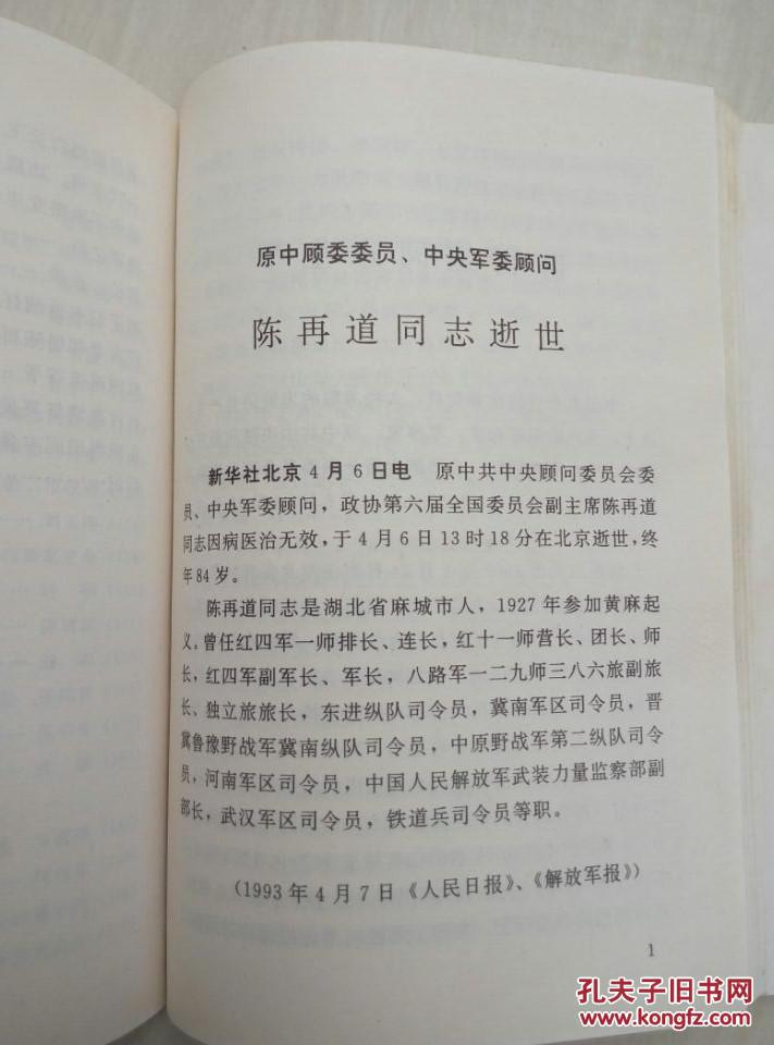 -陈再道将军纪念文集(开国上将,原武汉