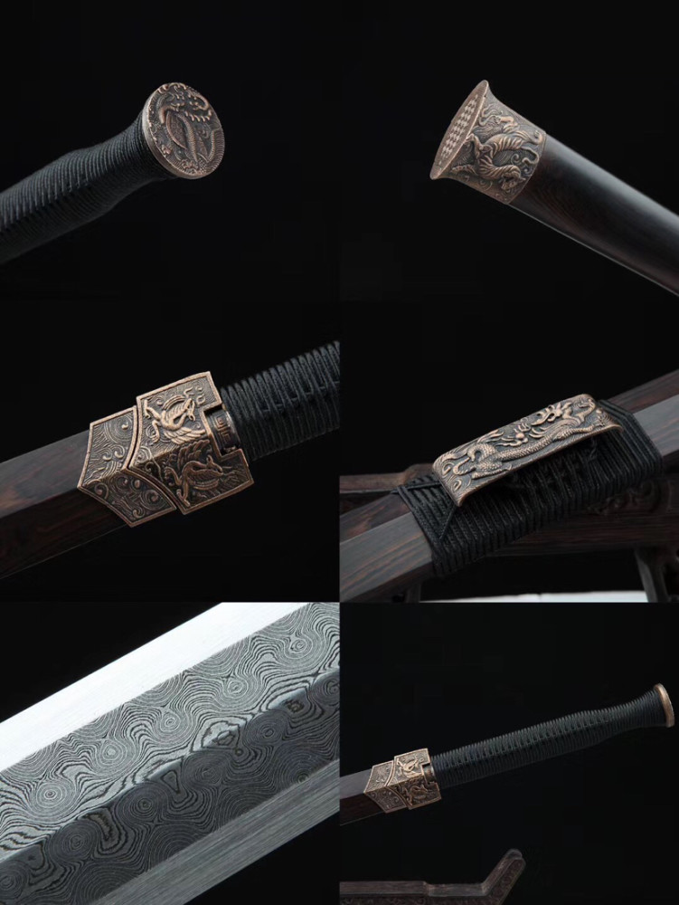雨点纹汉剑,百炼钢,铜装黑檀木鞘