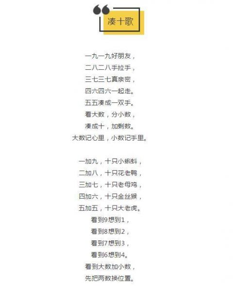 小学一年级数学:凑十法、破十法、借十法口诀(带习题)_ -End-