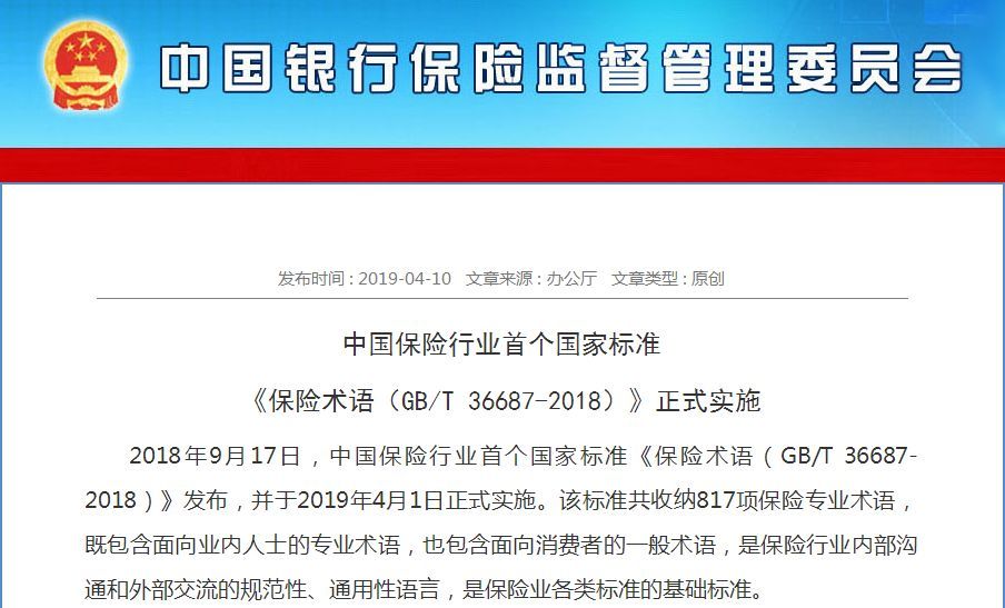 保险行业首个国家标准:817项专业术语-